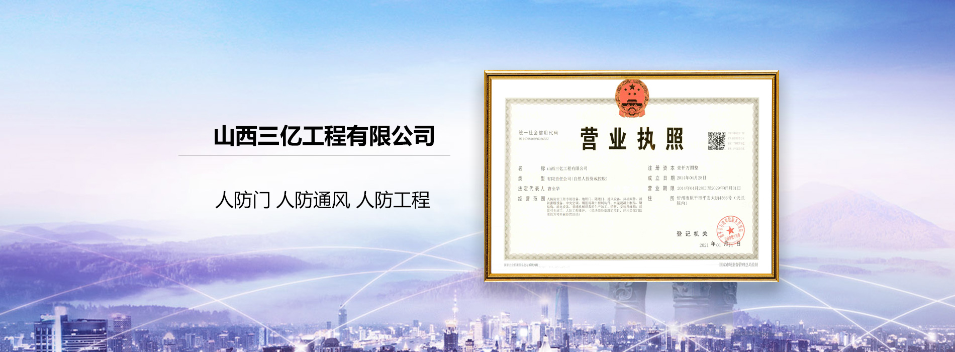 山西三億工程有限公司是經人民防空辦公室批準的人防工程的生產和定點安裝企業(yè)。公司及研發(fā).制造.銷售.服務于一體,產品通過 ISO9001 質量認證,并列入《人民防空設備產品目錄》。